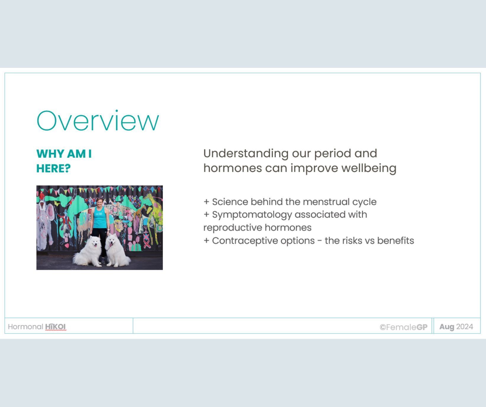 I had 90 minutes to share my knowledge of the menstrual cycle, how recognising hormone changes can improve your wellbeing and lead to berter recognition of your symptoms can improve your health now and in the future.