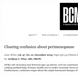 Dr Jerilyn Prior states a midlife woman with regular cycles is likely to be in perimenopause if she notices any 3 of the 9 changes: